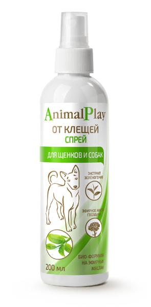 Спрей Animal Play репеллентный - это антипаразитарный спрей от клещей и других эктопаразитов для щенков и собак, с гвоздикой и зелёным чаем.