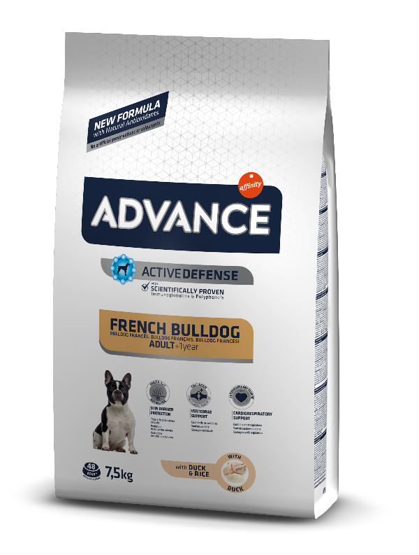 Advance Dog French Bulldog - это высококачественный сбалансированный полнорационный корм специально разработан для обеспечения пищевых потребностей собак породы Французский бульдог с первого года жизни.