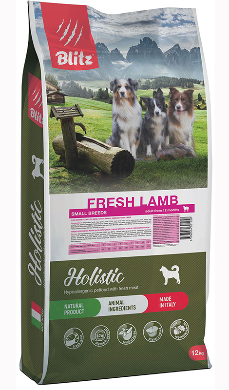 BLITZ Holistic LG Adult Small (Свежий ягненок) - при высокой питательности этот рацион характеризуется довольно малой жирностью – всего 14%. При соблюдении норм кормления, вам не придётся опасаться, что ваш питомец наберёт лишний вес и станет малоподвижным.