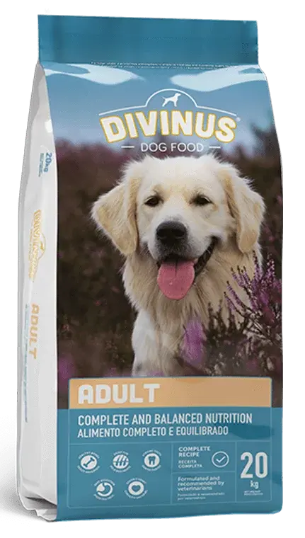 Divinus Dog Adult – полнорационный сухой корм для взрослых собак всех пород. Содержит необходимые витамины и минералы для удовлетворения пищевых потребностей питомца. Благодаря сбалансированной рецептуре корм легко усваивается.