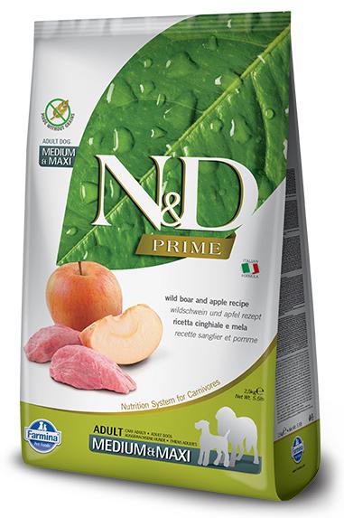 Farmina N&D Prime GF Adult Medium & Maxi (Кабан и яблоко) - полнорационный беззерновой корм для взрослых собак.