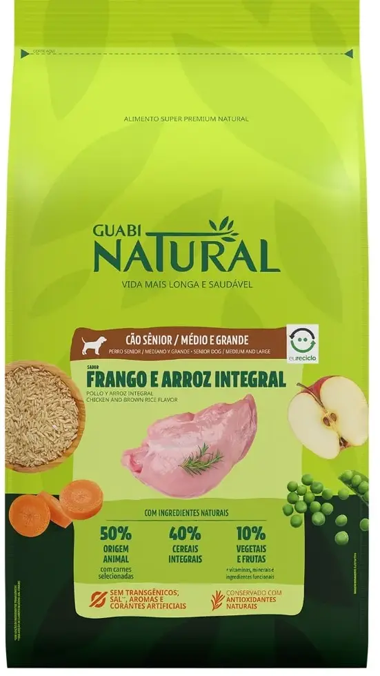 Guabi Natural Dog Medium & Large Senior (Цыпленок, рис) — полнорационный сухой корм для пожилых собак средних и крупных пород.