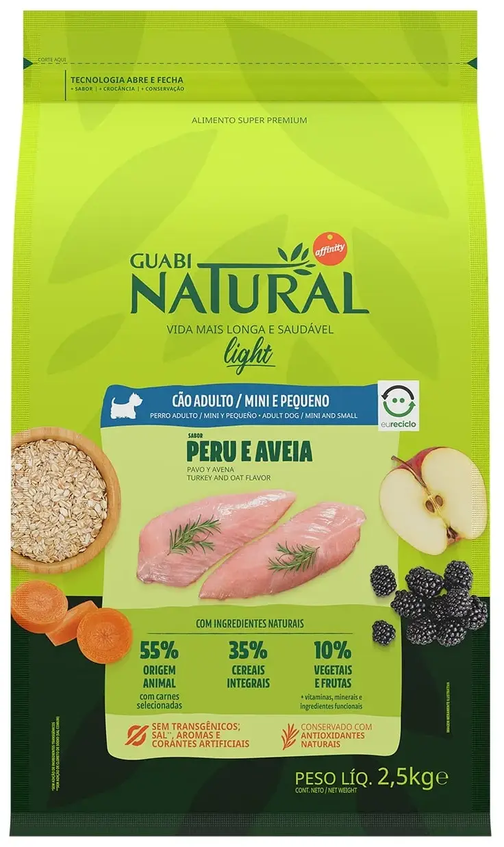 Guabi Natural Dog Mini Light (Индейка, овес) — низкокалорийный полнорационный сухой корм для взрослых собак мелких пород.