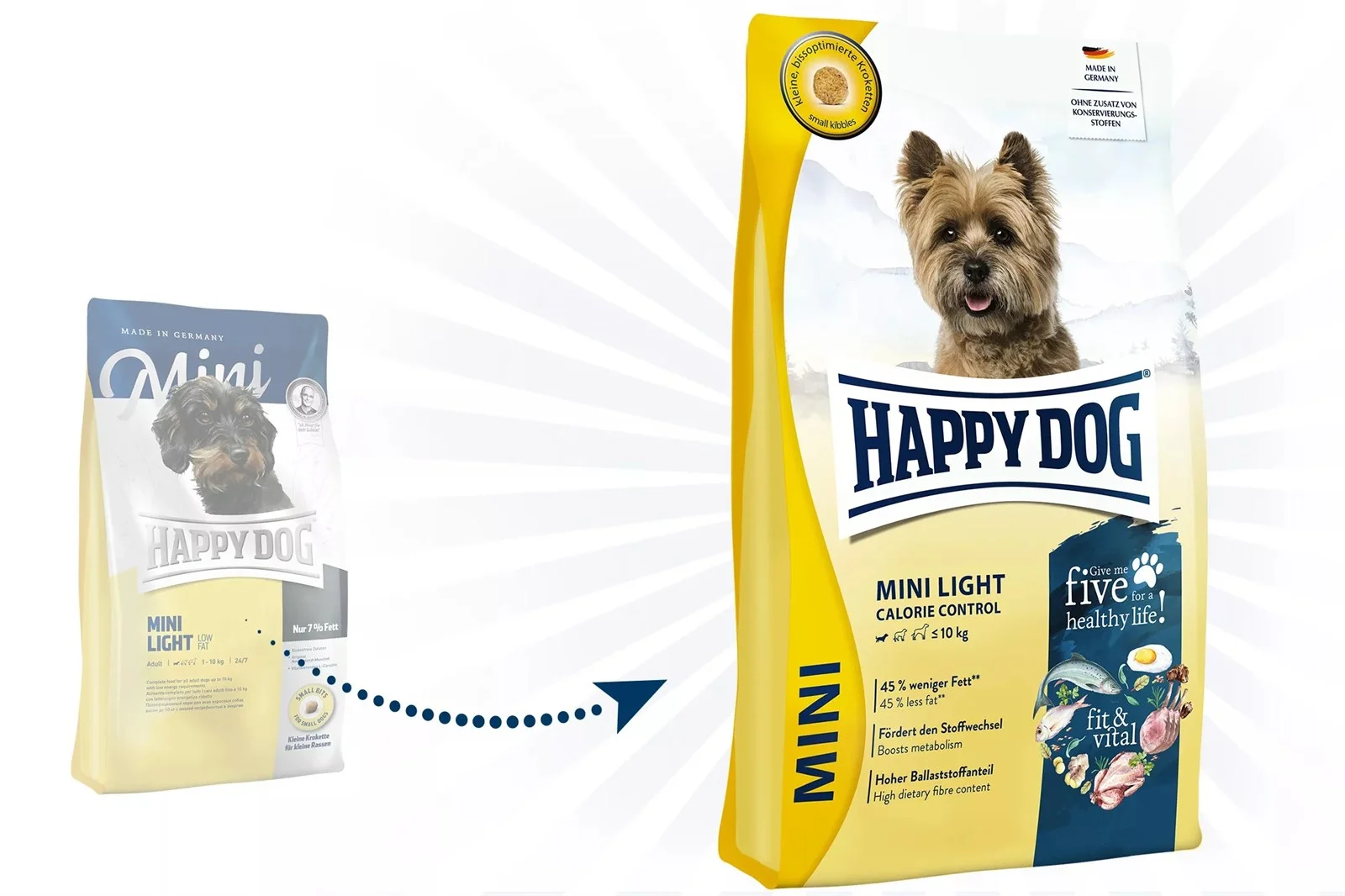 Happy Dog Mini Light Fit & Vital — это сухой корм для собак мелких пород весом до 10 кг, которым требуется нежирная пища для поддержания хорошей конституции тела и поддержания веса, например, после диеты.