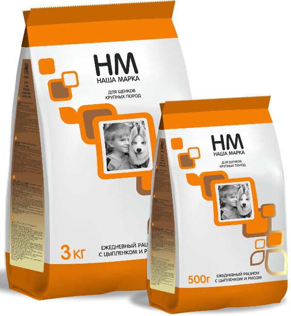 Корм "НМ" для щенков - это полноценный сухой корм для щенков крупных пород с цыпленком и рисом.
