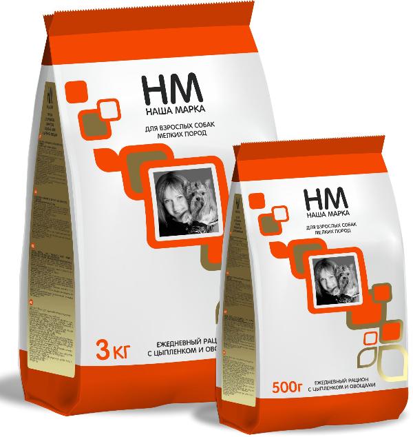 Корм "НМ" для взрослых собак - это полноценный сухой корм для взрослых собак мелких пород с цыпленком и овощами.