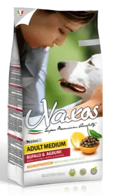 Naxos Adult Medium (Буйвол и цитрусы) – это полноценный однобелковый сухой корм без глютена, предназначенный для содержания взрослых собак среднего размера. Мясо буйвола, указанное первым ингредиентом на этикетке, является источником белка с высокой биологической ценностью, высокой усвояемостью и богатым минералами.