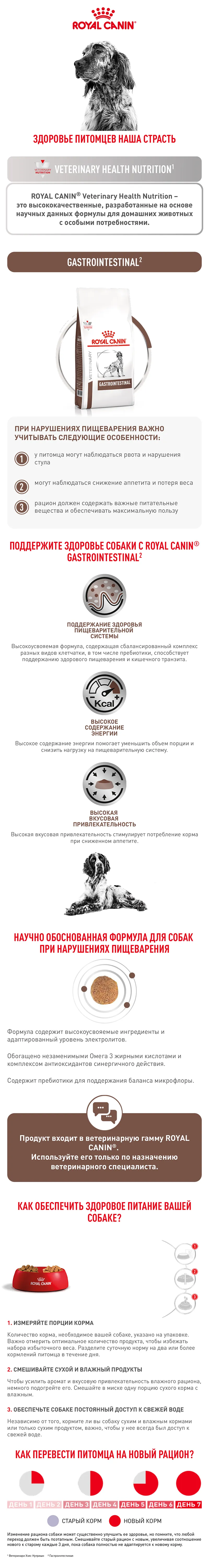 Royal Canin Gastrointestinal Dog – сухой полнорационный диетический корм для взрослых собак, рекомендуемый при острых расстройствах пищеварения. Ветеринарная диета.