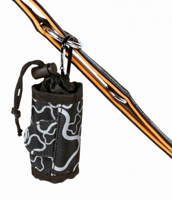 С карманом на липучке для извлечения пакетов и карабином для крепления.