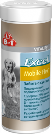 Эксель Мобайл Флекс плюс – это хондропротектор, улучшающий состояние суставов и поддерживающий подвижность собаки. Ценные ингредиенты, в т. ч. новозеландские мидии (25 %), были переработаны в уникальный порошок, который поддерживает здоровье суставов. Хондроитин и глюкозамин, витамин С и метионин помогают восстановить соединительные ткани и защитить суставные хрящи. Натуральный бетта-глюкан, компонент оболочки клеток дрожжей, гарантированно оказывает положительное влияние на защиту организма, равно как и на подвижность суставов. Омега-3 жирные кислоты уменьшают воспаление.