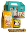 Включают в себя как переноску для удобной транспортировки домой, так и корма и лакомства, необходимые питомцу на первое время пребывания дома.