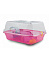 Лёгкая пластиковая клетка для грызунов с дополнительной дверцей на крышке. Крышка прочно крепится к поддону защёлками.