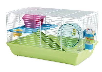 В комплект входит миска для еды и поилка, чтобы хомяк мог в любое время утолить голод и жажду. Для развлечений предусмотрено колесо, где так приятно побегать и растратить накопленную за день энергию. Расслабиться и спрятаться от чужих глаз можно в уютном домике на втором этаже.