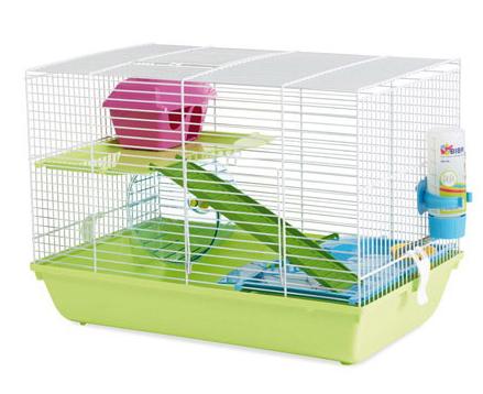 В комплект входит миска для еды и поилка, чтобы хомяк мог в любое время утолить голод и жажду. Для развлечений предусмотрено колесо, где так приятно побегать и растратить накопленную за день энергию. Расслабиться и спрятаться от чужих глаз можно в уютном домике на втором этаже.