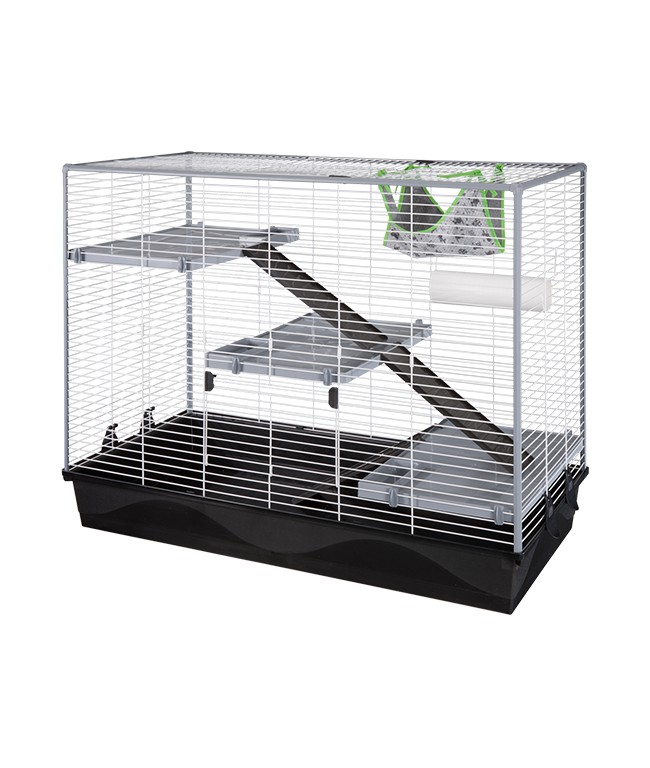 Что нужно для комфортной жизни хорька в домашних условиях? Вкусная и полезная еда, правильный уход и уютная клетка. Последнее очень важно, потому как именно там питомец будет проводить большее количество времени. Voltrega HURON 267B оборудована всем самым необходимым для комфорта питомца. Внутри установлены три платформы со встроенными кормушками, соединенные удобными лестницами, где можно поиграть, полазать и отдохнуть. В этих целях можно использовать и специальную трубу на боковой стенке клетки, а также уютный гамачок, подвешенный в самом верху! Что ещё нужно для счастья вашего любимца?