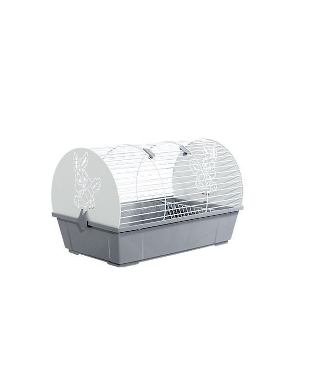 Внутри есть специальная кормушка. Большая дверца позволяет достать кролика из клетки, поддон легко отсоединяется для чистки. Выберете необходимый вам размер - 58 x 36 x 37,5 см или 100 x 56 x 51,5 см.