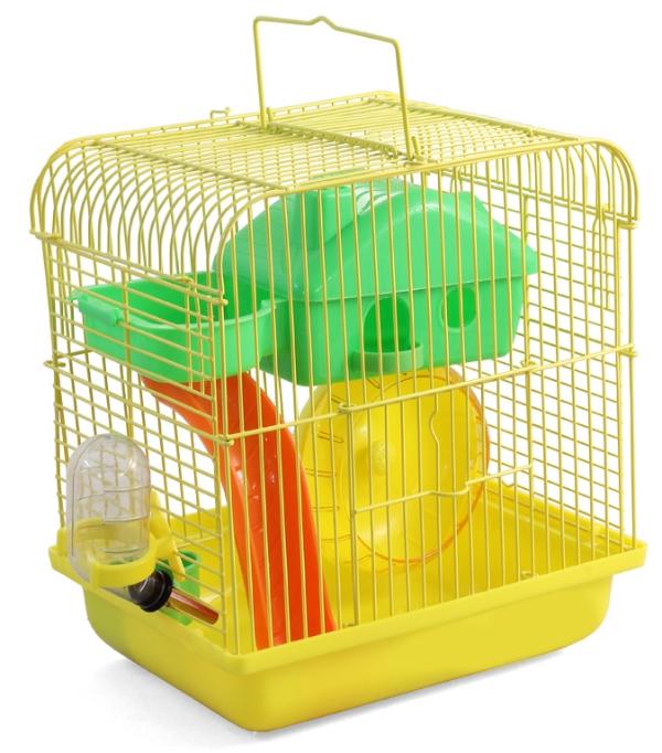 В комплектацию изделия также входят: пластиковая миска, поилка с носиком, горка со второго яруса на первый, вместительный домик и беговое колесо.