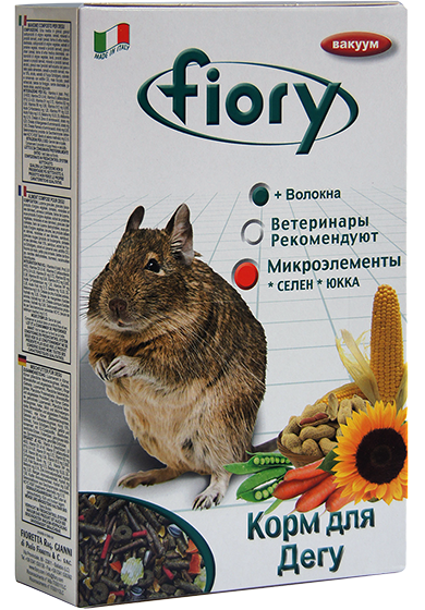 Fiory Корм для дегу — смесь содержит очень большое количество трав, сена, коры, волокнистого сырья для того, чтобы лучше соответствовать правильным пищевым потребностям дегу.