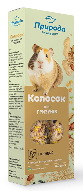Природа Колосок Ореховый для грызунов — полноценный витаминизированный корм и лакомство для грызунов.