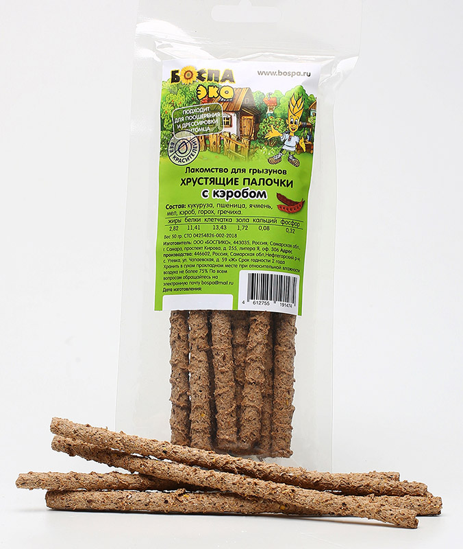 БОСПА ЭКО Хрустящие палочки с кэробом — лакомство, которое понравится любому питомцу! Изготовлено в виде палочки, что внешне напоминает веточку дерева.
