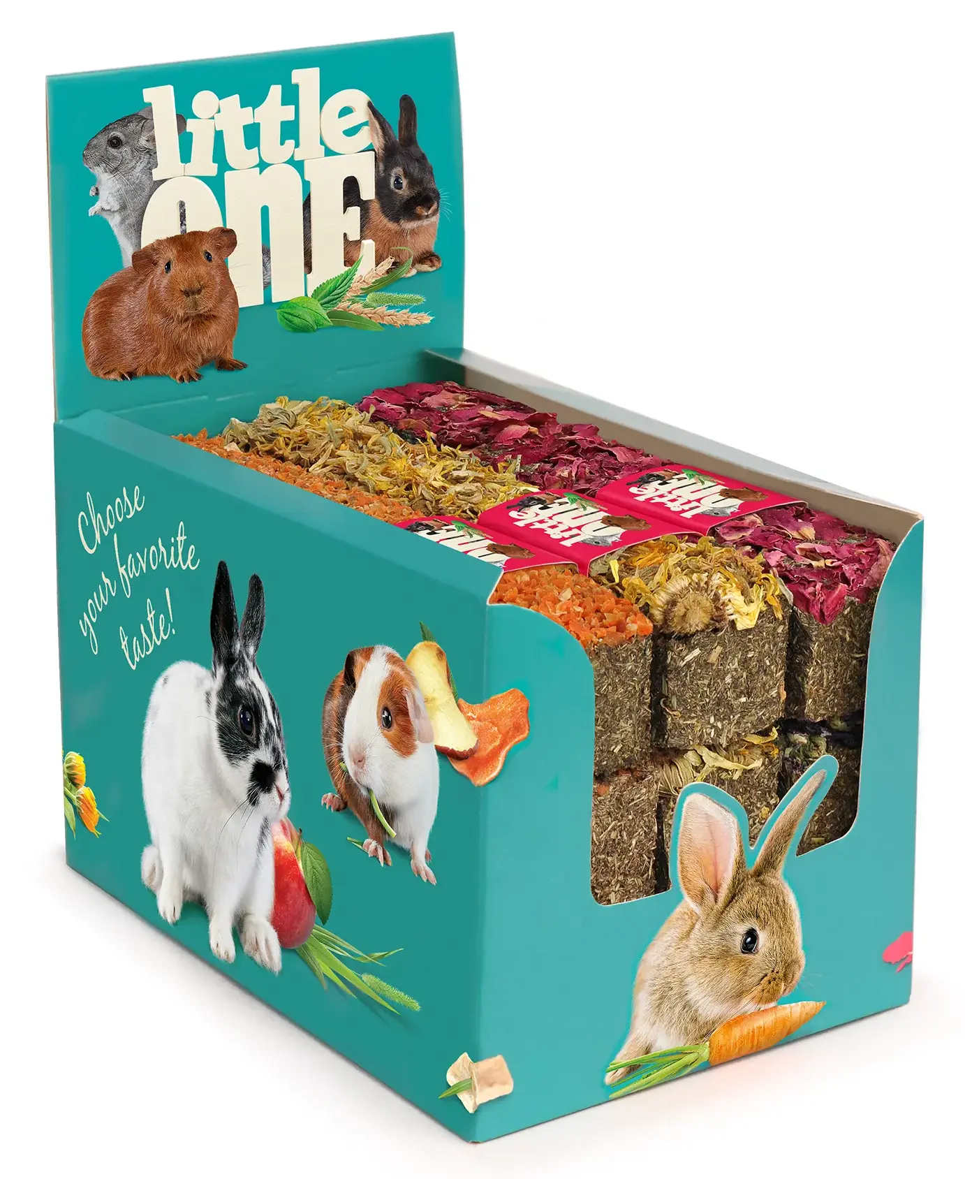 Little One Палочка из луговых трав - это лакомство, покрытое одним из трех вкуснейших топпингов: лепестки розы, морковь или цветки календулы. Занимательная форма палочки привлечет питомца на длительное время и станет идеальным инструментом для ухода за зубами. Широкий выбор вкусов позволит радовать питомца каждый раз новым лакомством, а входящие в состав ингредиенты обогатят рацион витаминами, минеральными веществами и клетчаткой, необходимой для правильного пищеварения.