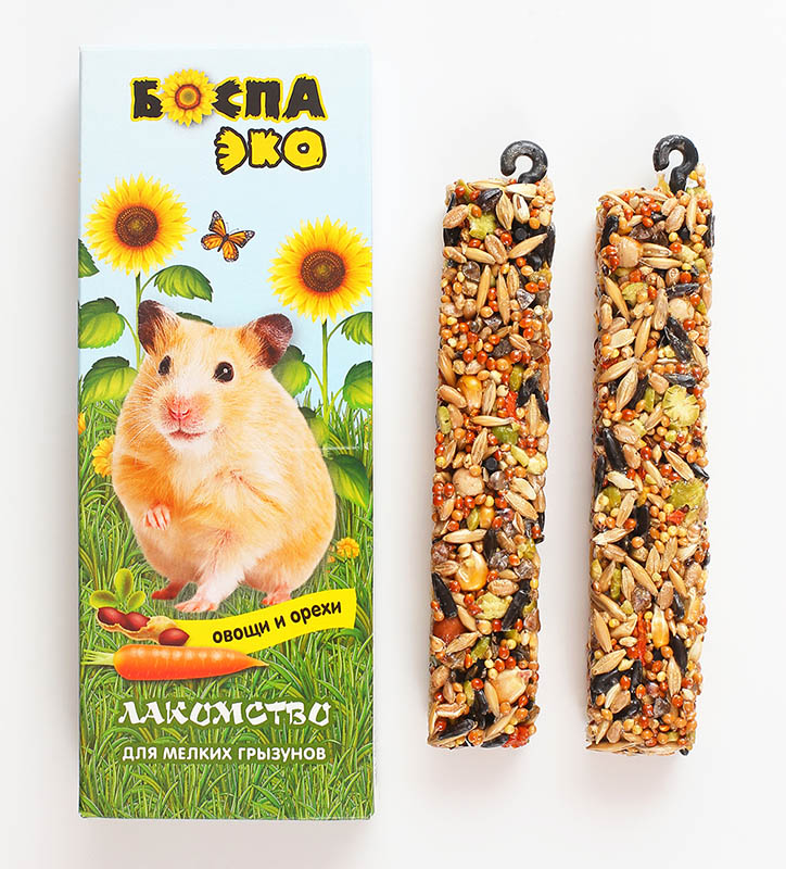 БОСПА ЭКО Палочки для мелких грызунов с овощами и орехами — традиционные лакомства-палочки, без сахара и красителей.