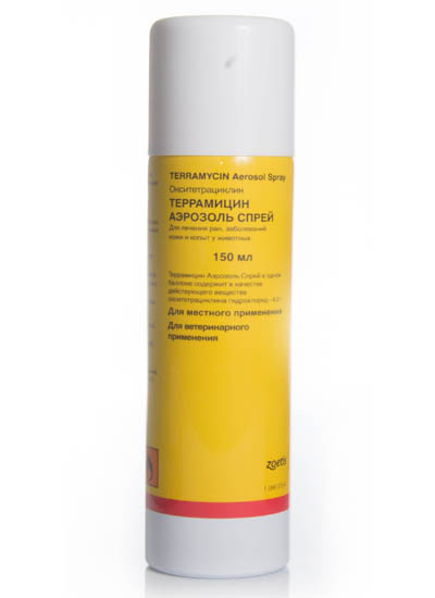 Препарат местного применения для лечения ран, ссадин, заболеваний кожи и копыт. Террамицин спрей назначается собакам, кошкам, кроликам и другим животным.