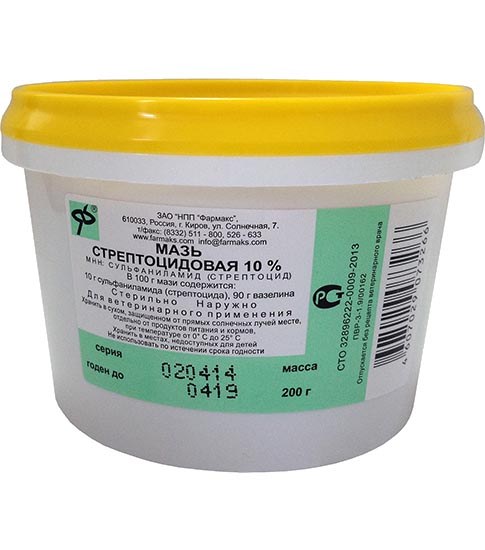Фармакс Мазь стрептоцидовая 10% - это препарат, созданный для лечения гнойных ран, язв, ожогов и других хирургических патологий кожи. Он имеет широкий спектр бактериостатического действия, оказывает противовоспалительное действие, уменьшает мацерацию и экссудацию, способствует ускорению регенерации поврежденной ткани.