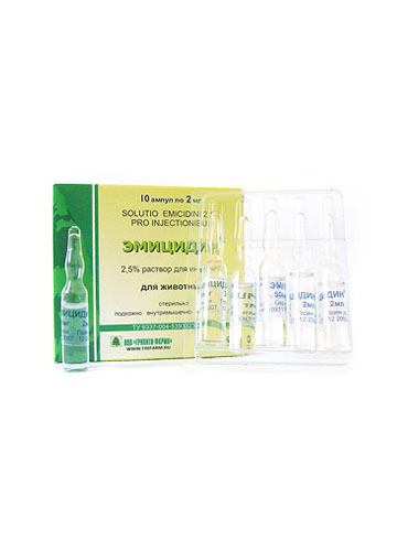 Агроветзащита Эмицидин, 2,5% - 2 мл - это антиоксидант, который назначается при сердечно-сосудистых заболеваниях, расстройствах ЖКТ, стрессовых ситуациях, а также в восстановительный период после перенесенных заболеваний.