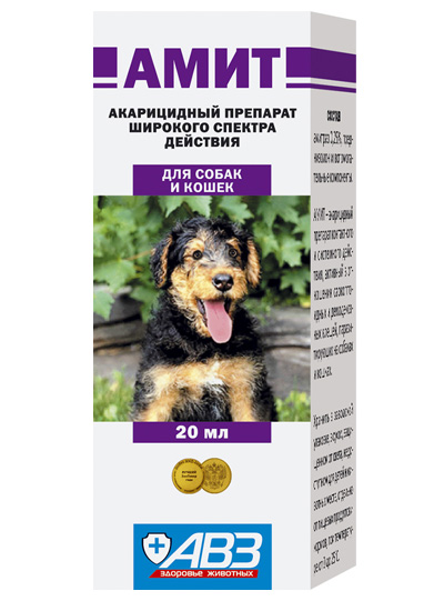 Безопасный лекарственный препарат для вашего питомца. Эффективен при поражении собак и кошек демодекозом, саркоптозом, нотоэдрозом. Амит может назначаться при ушной чесотке (отодектозе).