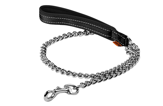 Представляет собой металлическую цепочку с ручкой. Этот тип подходит для собак, которые склонны жевать и разгрызать свои поводки. Обычно цепочки используют для фотосессий, выставок и коротких прогулок. Выбирая поводок-цепочку убедитесь в прочности крепления: некачественные цепочки могут просто разорваться.
