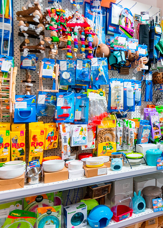 В нашем магазине вы найдёте все необходимые зоотовары для кошек, собак, рыб, птиц, грызунов, рептилий, земноводных и членистоногих.