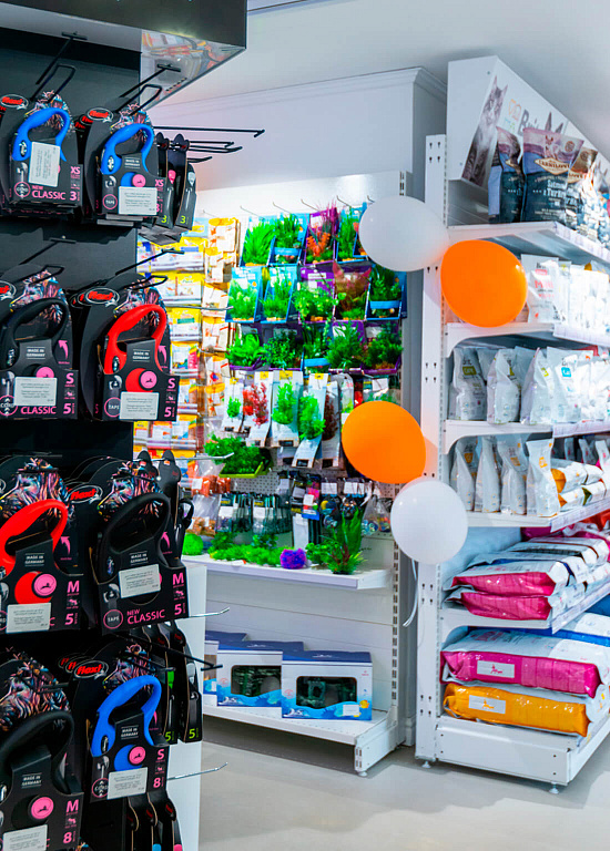 В зоомагазине работают аквариумисты, микробиологи и ветеринарные врачи. Они помогут подобрать амуницию и корма для питомцев с учётом их особенностей.