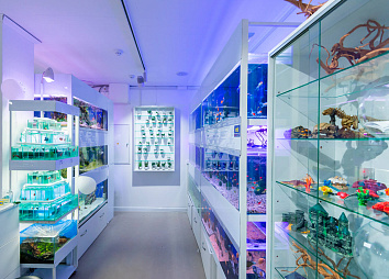 В магазине огромный выбор рыбок и других обитателей аквариума. Сифоны, фильтры, стерилизаторы и терморегуляторы для поддержания комфортного климата. Грунт и декорации позволят обустроить водную зону по вкусу.