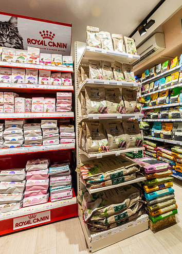 В магазине представлен большой перечень консервов, паучей и сухих кормов мировых брендов, игрушки, когтеточки, домики, переноски и другие зоотовары.